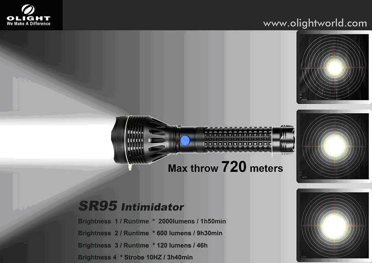 2. 120lm(46h)-600lm(9h30min)-2000lm(1h50min); 3. Reach up to 720meters by throwing the parallel beams in maximum. 4. With 7800mAh 7.4v 18650 rechargeable lithium battery inside, can also be used in SR90/91/92 with a perfect compatibility. 5. Hollow out structure in the head part reduces its weight by 25% than that of traditional sealed packet design..